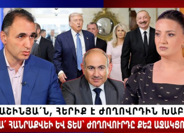 «Մեր ձևով»-ը ՔՊ-ի համար լուրջ խնդիրներ է ստեղծում՝ ինչը բնականաբար լավ է․ Գառնիկ ԴավթյանՍև ծովը չպետք է դառնա բախմшն ասպարեզ, դա կվնասի և՛ Ռուսաստանին, և՛ Ուկրաինային․ ԷրդողանՀայաստանին պետք է մարդ, որը մեր փոքրաթիվ ազգին կմիավորի, որովհետև մեր հակառակորդները ավելի շատ են և ավելի միաբանցած են, քան մենք․ Նարեկ ԿարապետյանՄարուքյանը ընդդիմադիրներին առաջարկում է համախմբվել՝ «Փաշինյանի թոշակի ուղարկելու համար» Արյան մեջ շաքարի մակարդակի գրեթե կրկնակի իջեցումը կապված է սրտի կաթվածի և ինսուլտի ավելի ցածր ռիսկի հետ․ The Lancet Diabetes & EndocrinologyՍյունիքի այցի ամփոփում․ փակվող դպրոցներ, կրճատվող աշխատատեղեր, դատարկվող գյուղեր․ Գոհար ՄելոյանՈվ ձեռք է բարձրացնում դպրոցի վրա, նա ձեռք է բարձրացնում Հայաստանի վրա․ Ռուբեն ՄխիթարյանՔիմ Քարդաշյանը սև կրծկալով զարմացրել է Սուրբ Ծննդյան երեկույթի հյուրերին Միայն լավ կրթությամբ կարող է կառուցվել ուժեղ Հայաստան․ Արթուր ԴանիելյանՎաղը մետրոն կաշխատի մինչեւ 01.00–ն Շարունակելով «Մեր ձևով» ժողովրդական շարժման անդամների այցը Սյունիքում՝ համոզված ենք, որ միասին կերտելու ենք ուժեղ ՀայաստանԳազայի հատվածում «Բայրոն» փոթորկի հետևանքով առնվազն 14 մարդ Է զոհվել 6 ամսից մենք կգանք ու կլուծենք բոլոր խնդիրները ի շահ մեր ժողովրդի․ Ալիկ ԱլեքսանյանԱյսօր տեղի ունեցավ «Լուսավոր Հայաստան» կուսակցության V համագումարը՝ նվիրված կուսակցության 10-ամյա հոբելյանինՀայաստանի և Իրանի ներկայացուցիչները քննարկել են հաջորդ տարի էլեկտրաէներգիայի ներկրման ավելացումըՀատկապես սահմանամերձ համայնքներում դպրոց փակելը հավասարազոր է գյուղը դատարկելու կանաչ լույսին․ Մարիաննա ՂահրամանյանՎրաստանը կուժեղացնի վերահսկողությունը՝ մաքսային գոտիներում թմրանյութերի մաքսանենգության աճի պատճառովԶելենսկին շшնտաժի է ենթարկում իր արևմտյան օգնականներին․ Զախարովա Էլի ասել եմ՝ գործող իշխանության հետ մատաղ ուտելու էլ չենք գնա. Էդմոն Մարուքյանը՝ դաշինք կազմելու մասինԴեկտեմբերի 14-ի գիշերը Երևանի հանրային տրանսպորտը կաշխատի ավելի երկար․ «Երևանի ավտոբուս»Պատվոգրեր ու խրախուսական պարգևներ՝ ոչ օլիմպիական մարզաձևերը ներկայացնող մարզիկներին և մարզիչներին ԱՄՆ-ն կչեղարկի բելառուսական կալիումի նկատմամբ պատժամիջոցները Էրդողանը հայտարարել է, որ Թրամփի հետ կքննարկի Ուկրաինայի խաղաղության ծրագիրը Ակսել Բակունցի «Միրհավը»՝ անգլերեն թարգմանությամբ Գործող վարչախմբի քաղաքականությունը բերում է նոր զիջումների. Ավետիք Չալաբյան «Հայրենիքի» զարգացման հերթական փուլը. Արթուր Վանեցյան«ՀայաՔվեն» այլևս պարզապես միավորում չէ․ այն վերածվում է նոր քաղաքական ուժի․ Արմեն Մանվելյան ՀՀ-ն այսօր «КГБ»-ի բանտ ունի, որտեղ նստած են արքեպիսկոպոսներ, ի՞նչ եվրոպական մոդել. Մարուքյան «Լուսավոր Հայաստանը» նշում է իր 10–ամյակը. Էդմոն Մարուքյան Սահմանադրական փոփոխությունները ոչնչացնում են Անկախության հռչակագիրը․ Արմեն Մանվելյան«Լուսավոր Հայաստանը» կմասնակցւ 2026 թվականի խորհրդարանական ընտրություններին. Էդմոն ՄարուքյանԵկեղեցու դեմ արշավը մեզ շեղում է իրական խնդիրներից. Մենուա Սողոմոնյան Հայկական ճշմարտությունները աստիճանաբար իրենց տեղը զիջում են թշնամու նարատիվներին. Էդմոն Մարուքյան Թոշակառու գնդապետը ստիպված տաքսի քշի, որ նախարարուհին 200 հազար դոլար արժողությամբ տուն առնի՞. Արշակ ԿարապետյանԿատարողներին գտել են, պատվիրատուներին՝ ոչԳիտության ճակատագիրը չի կարող որոշվել առանց գիտնականների․ Ատոմ Մխիթարյան Ֆիկտիվ տնտեսական աճի մասին. Աշոտ Ֆարսյան Կաթողիկոսի դեմ նոր մեղադրանք են ուզում կարել՝ հոգևորականների ձեռամբ Հայկական կողմը հաստատել է, որ ադրբեջան