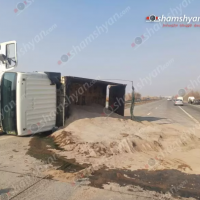 Երևան-Երասխ ճանապարհին ավազով բարձված բեռնատարը բախվել է երկաթե արգելապատնեշին և...