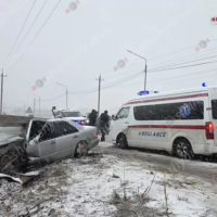 Զովունի-Եղվարդ ավտոճանապարհին «Mercedes»-ը բшխվել է բետոն էլեկտրասյանը, տապшլել ...