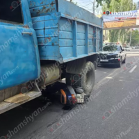 Երևանում մոտոցիկլի և բեռնատարի բախման հետևանքով մոտոցիկլը հայտնվել է «ԶԻԼ» բեռնա...