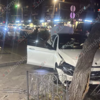 Երևանում «Mercedes»-ը կոտրել է գովազդային ցուցանակը, բախվել ծառին