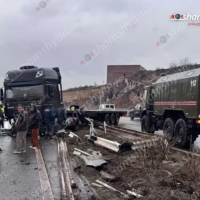 Կոտայքում բեռնատարը կոտրել է բաժանարար գոտում տեղադրված երկաթե արգելապատնեշները