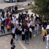 Բրյուսովի որոշ ուսանողները եռագույնը պատկերող ծուխ են արձակում ու միանում դասադո...