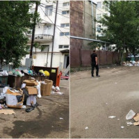Էրեբունիում անձրեւաջրերը հեղեղել են բնակելի շենքի մուտքը
