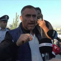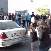 Եռաբլուրում զոհվածի հարազատը բաժակով ջուր է շփել լրագրողի վրա (Տեսանյութ)