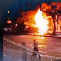 Բացառիկ կադրեր. Ինչպես է Ամիրյան փողոցում վթարից հետո այրվում ավտոմեքենան