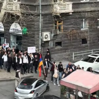 Սամվել Կարապետյանի աջակիցները Ուժեղ Հայաստան բացականչելով գնում են հանրահավաք