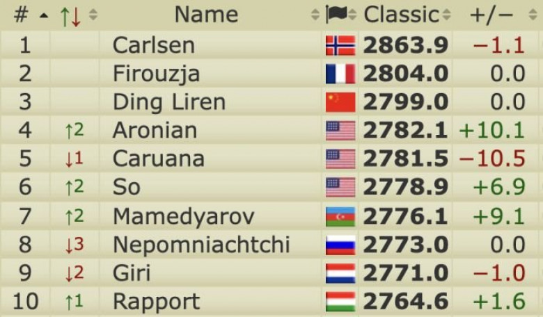 ՍպորտԳերմանիայի մայրաքաղաք Բեռլինում անցկացվող ՖԻԴԵ Գրան պրի շարքի առաջին մրցաշարում տարած 3 հաղթանակի եւ 2 ոչ ոքիի շնորհիվ Լեւոն Արոնյանի անհատական վարկանիշը 2700chess live-ի համաձայն հասել է 2782-ի։ Հայաստանի հավաքականի նախկին առաջատարը դարձել է ամենաբարձր վարկանիշ ունեցող ամերիկացի գրոսմայստերը։