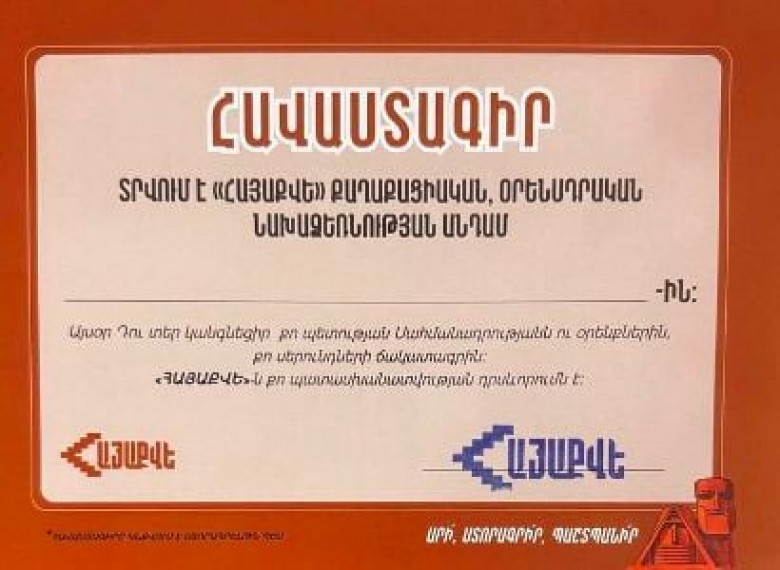 «Հայաքվե»-ին մասնակցած բոլոր մեր համախոհները պարտադիր կերպով մասնակցության հավաստագիր են ստանում, որ կարելի է ներկայացնել Ֆեյսբուքի սեփական էջում, ինչպես նաև օգտագործել մեր հետագա միջոցառումներին մասնակցելու համար: