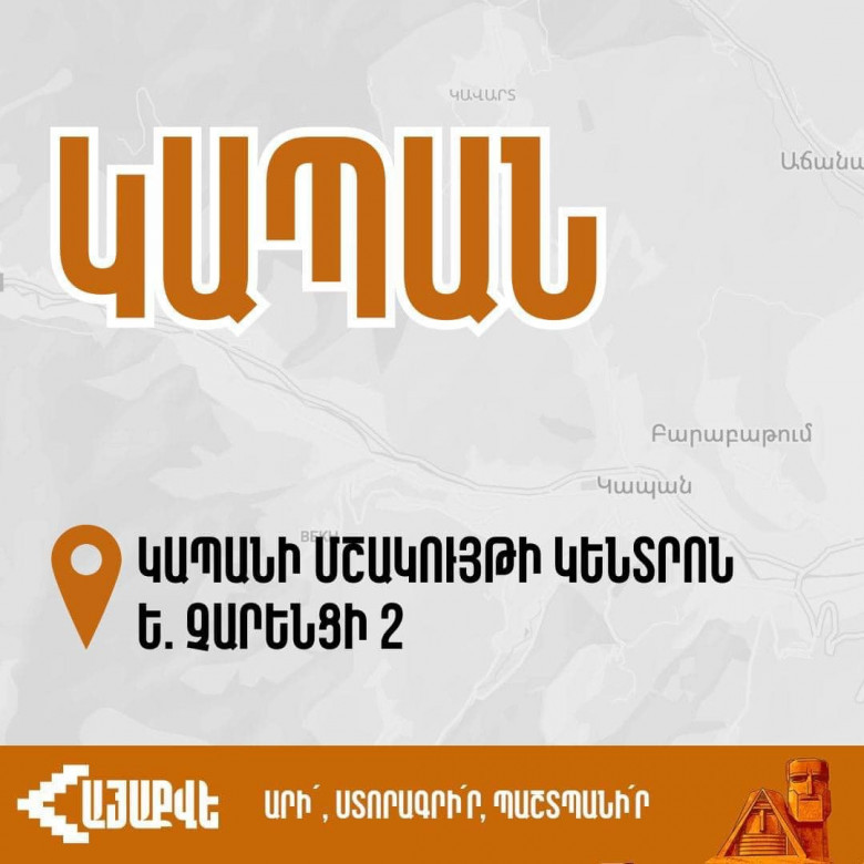 13։00-ին բացվում է մեր գրասենյակը Կապանի Մշակույթի կենտրոնում, Չարենցի 2 հասցեով։