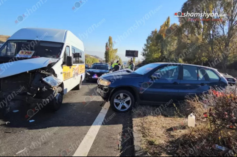 Այսօր՝ նոյեմբերի 7-ին, ժամը 14:30-ի սահմաններում Երևան-Սևան-Իջևան ավտոճանապարհի «Չայնիի» ոլորանների սկզբնամասում՝ «Պոլկովնիկի» օբյեկտի մոտ,. բախվել են «BMW X5» և թիվ 270 երթուղին սպասարկող մարդատար «Գազել»-ը: