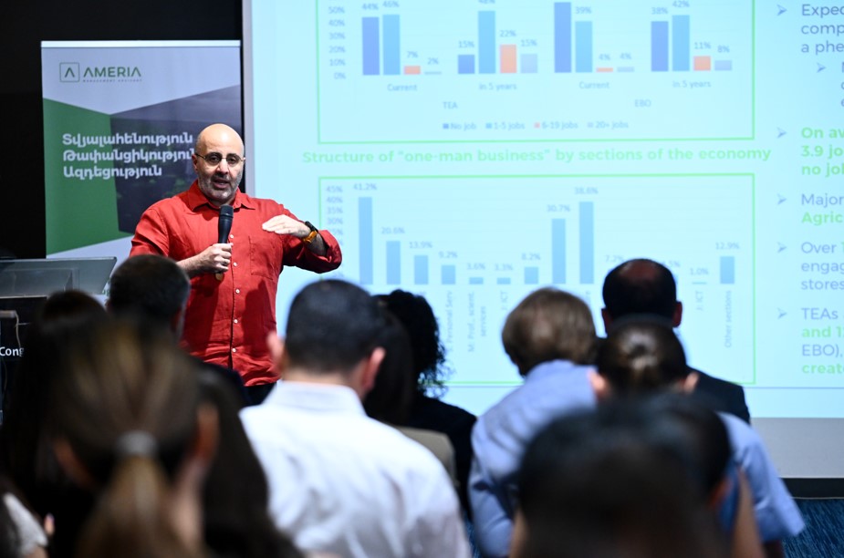 «Ամերիա» ՓԲԸ գործընկեր, «Ամերիա» կառավարման խորհրդատվական ծառայության տնօրեն Տիգրան Ջրբաշյանն իր ելույթում նշեց. «Զեկույցի արդյունքներն ակնհայտորեն ցույց են տալիս, որ ձեռնարկատիրությունը Հայաստանում պահանջում է ավելի լայն քաղաքական տեսլական՝ այնպիսին, որը դուրս է գալիս միայն ֆինանսական աջակցության շրջանակներից և կենտրոնանում է կրթության, թվային ներառականության և կառուցվածքային խթանների վրա, որոնք նպաստում են բիզնեսի մասշտաբավորմանը, նորարարությանը և երկարաժամկետ գոյատևմանը»։