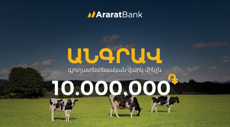 Օգտվե՛ք ԱրարատԲանկի՝ անգրավ գյուղատնտեսական վարկի առաջարկից, որը մշակվել է տարվա այս շրջանում վարկառուների կարիքներն ու զարգացման հնարավորությունները հաշվի առնելով։