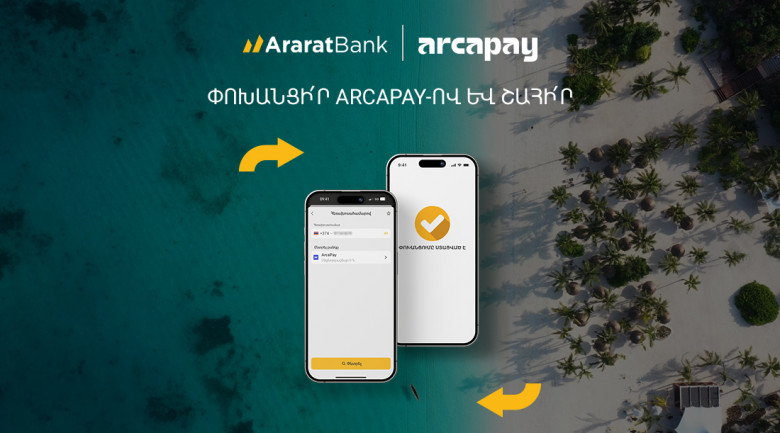 ԱրարատԲանկը և «Արմենիան Քարդ»-ը ArcaPay համակարգի շրջանակներում ներկայացնում են հատուկ առաջարկ․ փոխանցի՛ր հեռախոսահամարով և ստացի՛ր նվերներ շահելու հնարավորություն։