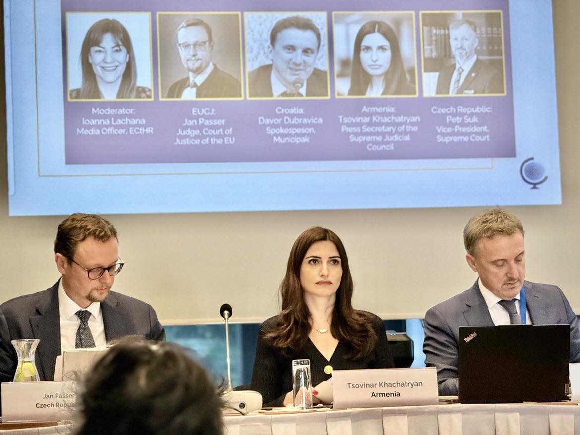 Բարձրագույն դատական խորհրդի մամուլի խոսնակ Ծովինար Խաչատրյանը ելույթ է ունեցել Չեխիայի CEELI ինստիտուտի «Դատական անկախություն, օրենքի գերակայությունը և հանրային վստահությունը» խորագրով աշխատաժողովին։ Նա ներկայացրել է Հայաստանի դատական համակարգի կառուցվածքը, լրատվամիջոցների հետ հաղորդակցման հայաստանյան փորձը, շվեդ գործընկերների աջակցությամբ ձևավորված դատարանների խոսնակների ինստիտուտը։ Ծովինար Խաչատրյանի պանելային քննարկման բանախոսներն են եղել ԵՄ արդարադատության դատարանի դատավոր Յան Պասսերը, Խորվաթիայի քաղաքացիական դատարանի դատավոր Դավոր Դուբրավիցան, Չեխիայի Գերագույն դատարանի փոխնախագահ Պետր Սուկը։