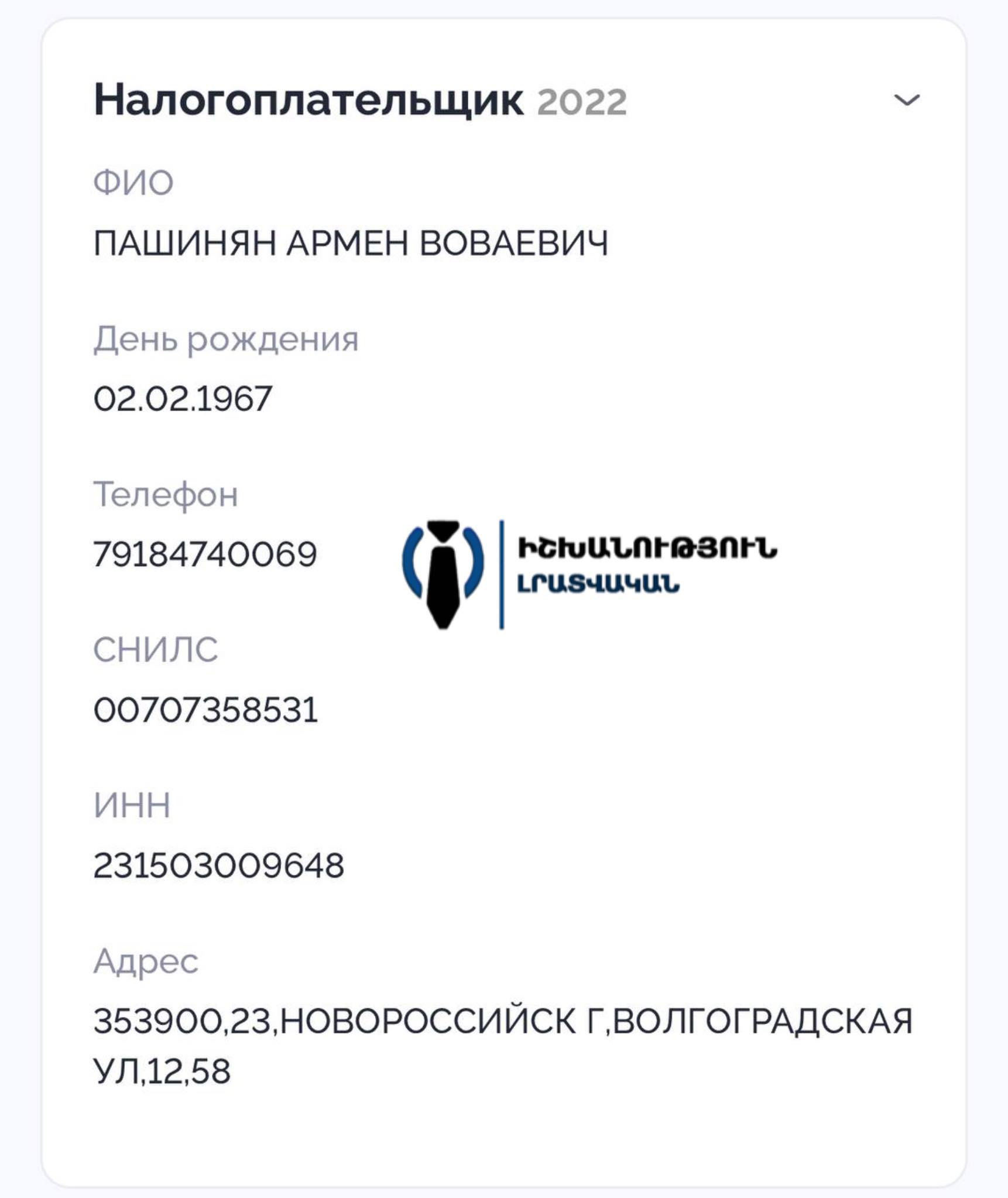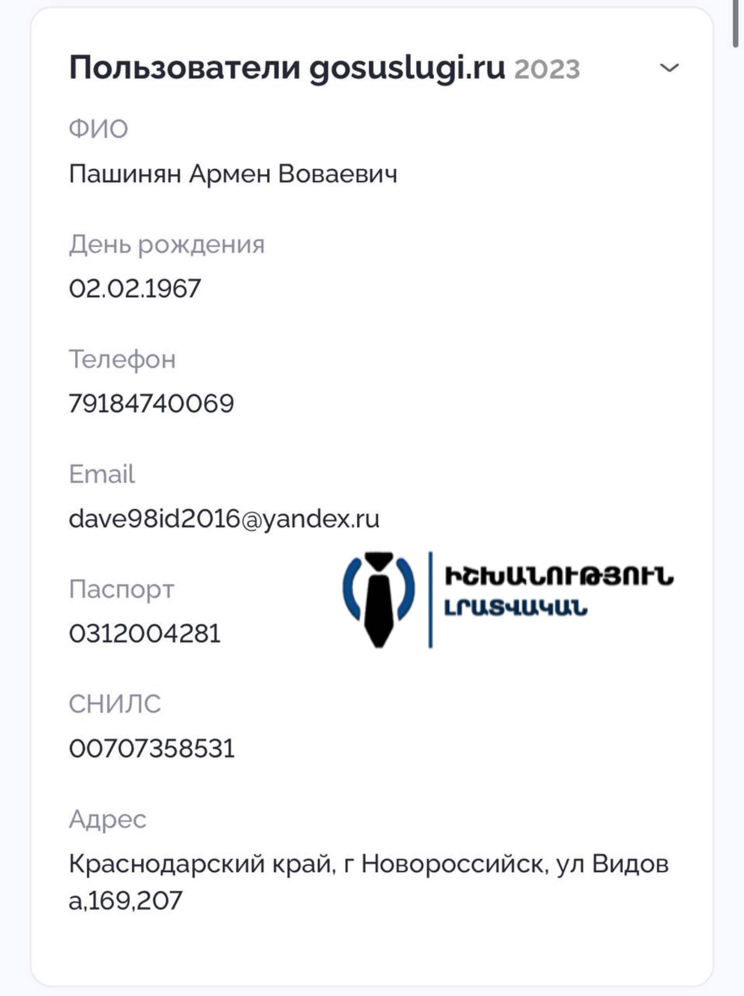 Մեր ձեռքի տակ գտնվող փաստաթղթերի համաձայն՝ վարչապետ Նիկոլ Փաշինյանի եղբայրը՝ Արմեն Վովայի Փաշինյանը, հանդիսանում է Ռուսաստանի Դաշնության քաղաքացի և ոչ միայն: