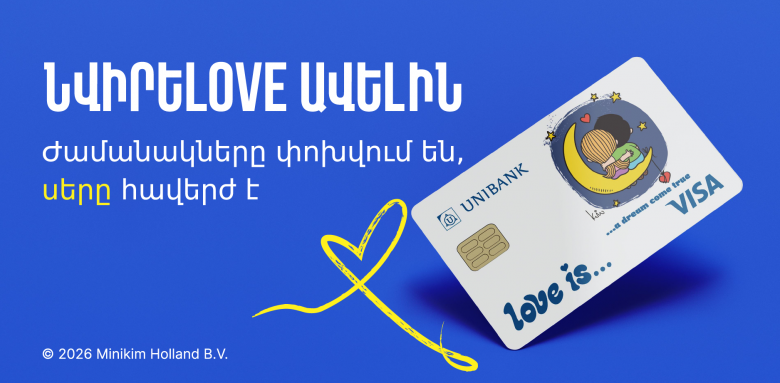 Յունիբանկը թողարկել է Love Is… բանկային քարտերի նոր շարք՝ վառ և ջերմ հիշողություններ արթնացնող դիզայնով։ Նոր քարտերը համատեղում են շահավետ սպասարկման պայմաններն ու լեգենդար նկարազարդումներից ոգեշնչված ձևավորումը՝ միաժամանակ հաճախորդներին ընձեռելով Փարիզ ռոմանտիկ ուղևորություն շահելու հնարավորություն։ Հաճախորդները կարող են չորս դիզայնից ընտրել այն տարբերակը, որն առավել համահունչ է իրենց տրամադրությանը, և ունենալ քարտ, որը ամեն օր կհիշեցնի հոգատարության և սիրո կարևորության մասին։