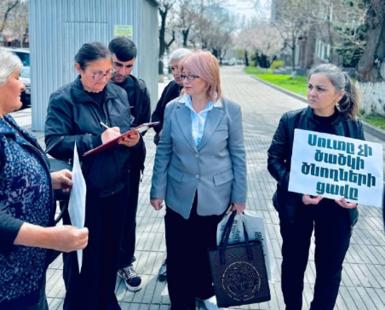 ԱԱԾ շենքի մոտ արտաշիրիմում պահանջող ծնողները` «Համահայկական ճակատ» շարժման անդամների հետ միասին նամակ են հանձնում ԱԱԾ տնօրենին