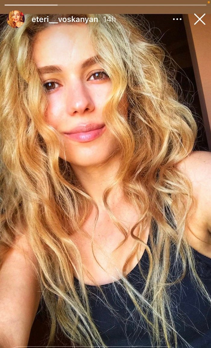 Instagram-յան էջի Stories բաժնում, ուր ցանկացած տեղեկատվություն հասանելի է միայն 24 ժամ, ինչից հետո անհետանում է, հրապարակված լուսանկարում դերասանուհին սեւ շապիկ է կրում։ Նա արձակել է մազերն ու ցույց տվել բնական գեղեցկությունը. դերասանուհին շպարված չէ։