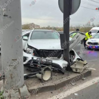 Վթար Երևանում, բախվել են «Nissan» ու «Mercedes», որն էլ հետո՝ լուսակիրի սյանը. S...