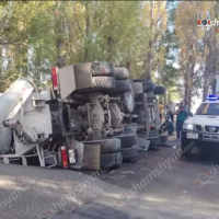 Երևանում ցեմենտատարը կողաշրջվել է. վարորդին դուրս են բերել ավտոմեքենայից՝ օգտագո...