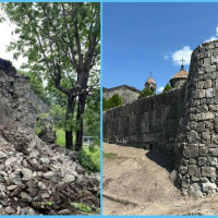 Հաղպատի վանական համալիրի պարսպի աշտարակը փլուզումից առաջ և հետո