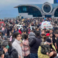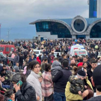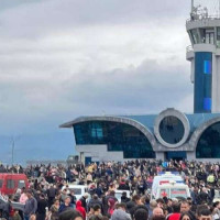 Ստեփանակերտի օդանավակայանում հավաքված արցախցիները պահանջում են ուղղաթիռներով տար...