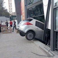 Երևանում մեքենան բախվել է «ՍԱՍ» ֆուդկորտի արտաքին երեսպատման ապակիներին