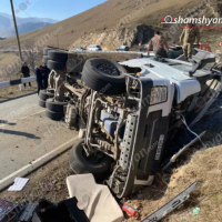 Երևան-Երասխ ճանապարհին ավազով բարձված բեռնատարը բախվել է երկաթե արգելապատնեշին և...