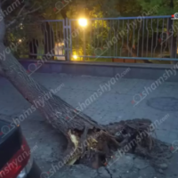 Երևանում քամու հետևանքով կոտրվել են ծառեր և վնասվել թիթեղներ