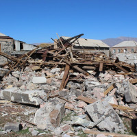Թշնամու հարվածային ԱԹՍ-ի հրթիռակոծումից Մեծ Մասրիկ գյուղի խաղաղ բնակչի տունը վեր...