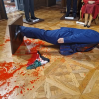 Դիմակավորված ցուցարարը կարմիր ներկով պատել և կոտրել է Բենիամին Նեթանյահուի մոմե ...