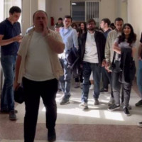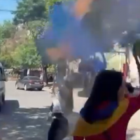 Բրյուսովի որոշ ուսանողները եռագույնը պատկերող ծուխ են արձակում ու միանում դասադո...