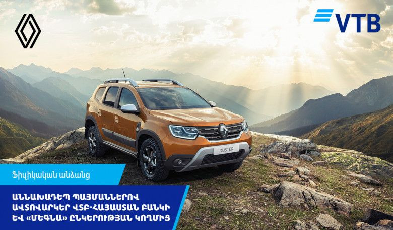 ՀասարակությունՎՏԲ-Հայաստան Բանկը և «ՄԵԳՆԱ» ՍՊԸ-ն համատեղ հաճախորդներին են առաջարկում ձեռք բերել Renault մակնիշի ավտոմեքենաներ՝ վարկավորման աննախադեպ շահավետ պայմաններով: