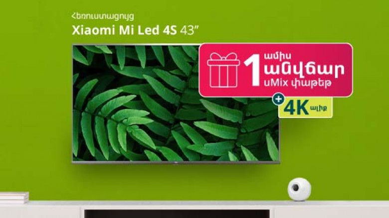 ՀասարակությունԱյսուհետ Ucom-ի առցանց խանութում նոր բաժանորդները կարող են ձեռք բերել Xiaomi Mi Led 4s կամ Xiaomi Mi TV P1 հեռուստացույցներից մեկը և ստանալ 1 ամիս անվճար uMix փաթեթից օգտվելու և 4K ալիք դիտելու հնարավորություն: Իսկ Ucom TV առկա բաժանորդները կստանան 10% զեղչ, ինչպես նաև 4K որակի «Love Nature» հեռուաստաալիքը 1 ամիս անվճար վայելելու հնարավորություն: