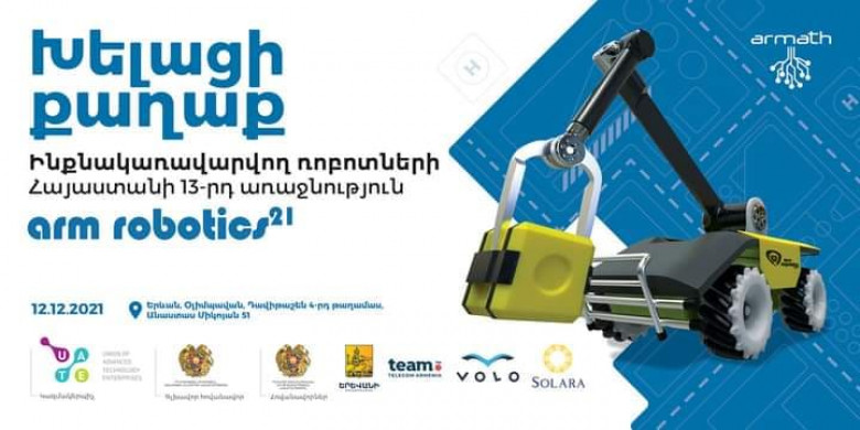 ՀասարակությունԴեկտեմբերի 12-ին Երևանի «Օլիմպավան» կենտրոնում տեղի կունենա «ԱրմՌոբոտիքս 2021» ինքնակառավարվող ռոբոտների Հայաստանի 13-րդ առաջնությունը, որը կրում է «Խելացի քաղաք» խորագիրը։