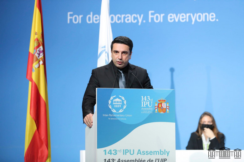 ՀՀ ԱԺ նախագահը նոյեմբերի 28-ի նիստում ելույթ է ունեցել: Նա շնորհակալություն է հայտնել իսպանացի գործընկերներին՝ երկու տարվա ընդմիջումից հետո համաժողովի գերազանց կազմակերպման եւ ջերմ հյուրընկալության համար: Խորհրդարանի նախագահը նշել է, որ վերջին տարիներին Հայաստանը եւ հայ ժողովուրդը բազմաթիվ ներքին եւ արտաքին մարտահրավերների են առերեսվում: Ալեն Սիմոնյանն ընդգծել է, որ 2018 թվականի թավշյա հեղափոխությունից հետո Հայաստանի կառավարությունը նախաձեռնել է լայնամասշտաբ բարեփոխումներ բազմաթիվ ոլորտներում՝ ի նպաստ ժողովրդավարական արժեքների եւ սկզբունքների: Նա շեշտել է, որ ժողովրդավարությունը Հայաստանում այլընտրանք չունի: Ազգային ժողովի նախագահը ժողովրդավարության զարգացման լուրջ մարտահրավերներից է համարել ապակայունացման եւ տարածաշրջանային հակամարտությունների վտանգը: