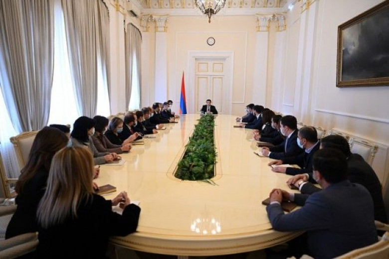 ՔաղաքականությունՍահմանադրության համաձայն՝ Հանրապետության նախագահի լիազորությունները ստանձնած Ազգային ժողովի նախագահ Ալեն Սիմոնյանը նախագահական նստավայրում այսօր հանդիպել է Հանրապետության նախագահի աշխատակազմի հետ: