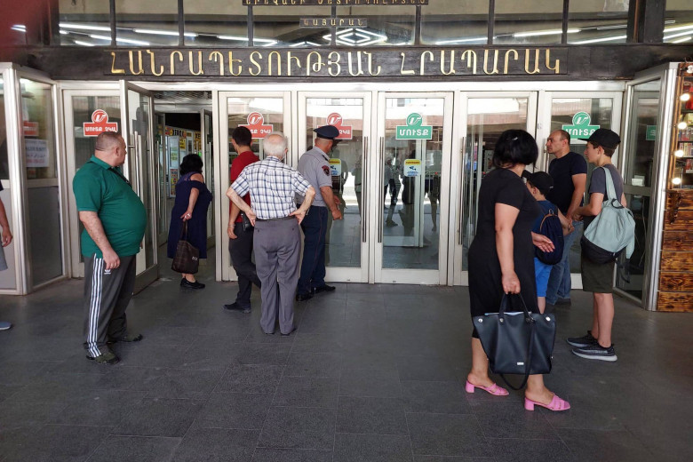 «Հանրապետության հրապարակ» մետրոյի կայարանի մոտ ծառայություն իրականացնող ոստիկանը քաղաքացիներին հայտնեց, որ փակ են բոլոր կայարանների մուտքերը: