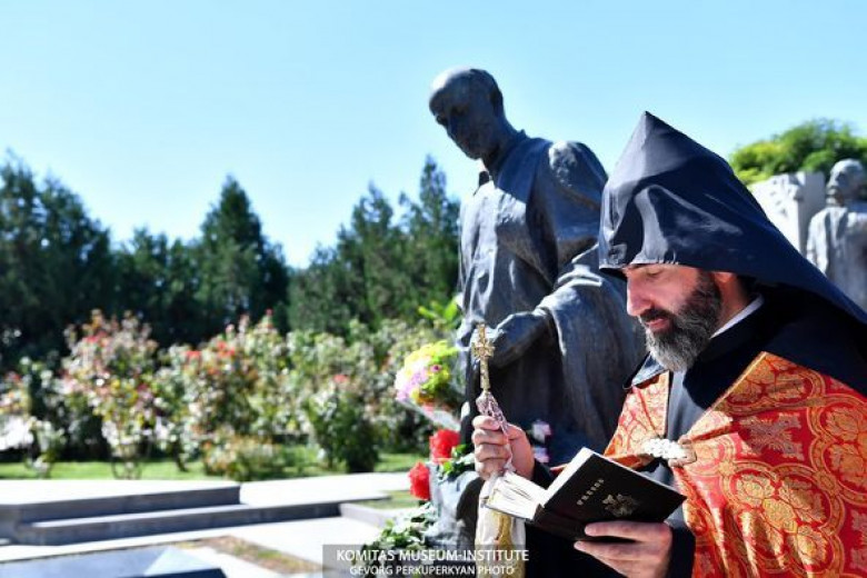 Կոմիտաս Վարդապետի 153-ամյակի առթիվ այսօր Հայր Ասողիկ աբեղա Կարապետյանը հոգեհանգստյան կարգ անցկացրեց Կոմիտասի պանթեոնում