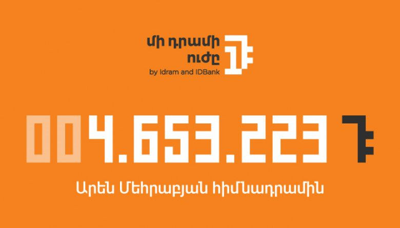 ՀասարակությունՆոյեմբեր ամսվա վերջին IDBank-ն ու Իդրամը ամփոփեցին «Մի դրամի ուժը» նախաձեռնության հերթական ծրագիրը։ Այս ամսվա ընթացքում կուտակված բոլոր «մի դրամները»՝ 4․653․223 դրամ, փոխանցվելու են «Արեն Մեհրաբյան» բարեգործական հիմնադրամին։