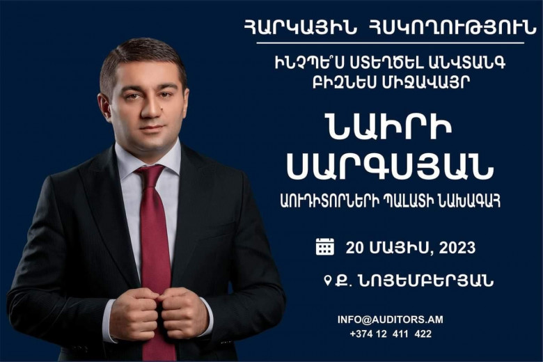 «Աուդիտորների Պալատ»-ի նախագահ Նաիրի Սարգսյանը Ք.Նոյեմբերյանում հանդես կգա «ՀԱՐԿԱՅԻՆ ՀՍԿՈՂՈՒԹՅՈՒՆ» թեմայով դասախոսությամբ