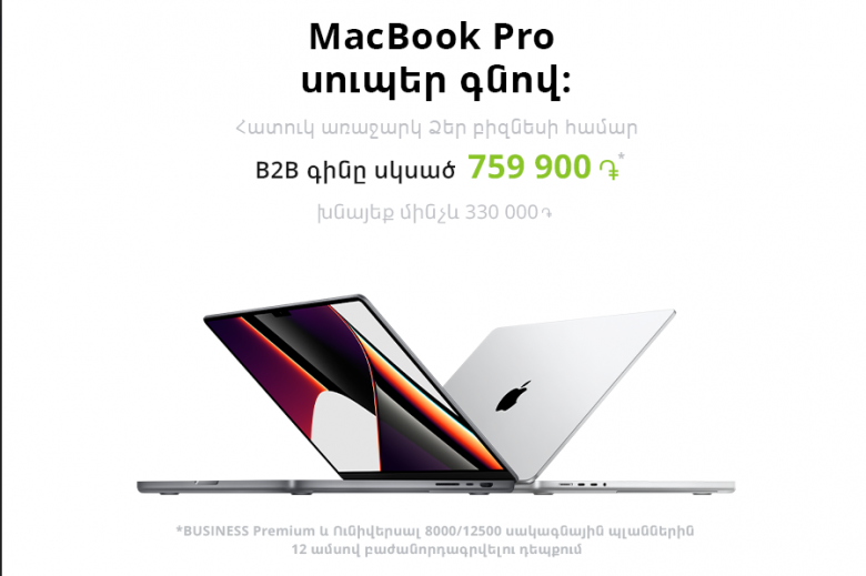 ՀասարակությունԱյսուհետ «Յուքոմ» ընկերության բիզնես հաճախորդները կարող են միանալ Ucom-ի Business Premium, Ունիվերսալ 8000 կամ Ունիվերսալ 12500 սակագնային պլաններին 12 ամսով և աննախադեպ ցածր արժեքով ձեռք բերել Apple ընկերության MacBook Pro 14 և MacBook Pro 16 սարքավորումները՝ խնայելով մանրածախ գնի մինչև 30%-ը։ Ավելին, բիզնես հաճախորդների համար կգործեն նաև հին սարքավորման փոխանակման՝ Trade-In և հետգնման՝ Buy-Back ծառայությունները։