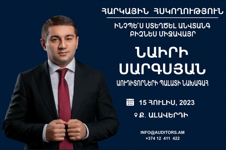 «Աուդիտորների Պալատ»-ի նախագահ Նաիրի Սարգսյանի «ՀԱՐԿԱՅԻՆ ՀՍԿՈՂՈՒԹՅՈՒՆ» թեմայով հերթական դասախոսությունը տեղի կունենա հուլիսի 15-ին ք.Ալավերդիում