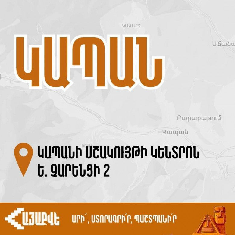 13։00-ին բացվում է մեր գրասենյակը Կապանի Մշակույթի կենտրոնում, Չարենցի 2 հասցեով։
