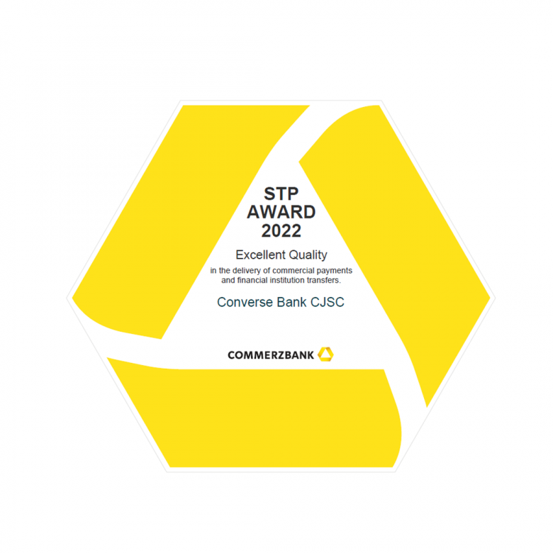 Նշենք, որ միջազգային փոխանցումների ոլորտում Կոնվերս Բանկի նվաճումները բարձր գնահատականի են արժանացել գործընկերների կողմից նաև նախորդ տարիներին, ինչի արդյունքում Բանկը «Euro STP Excellence Award» մրցանակակիր է դարձել նաև 2018, 2019, 2020թթ: