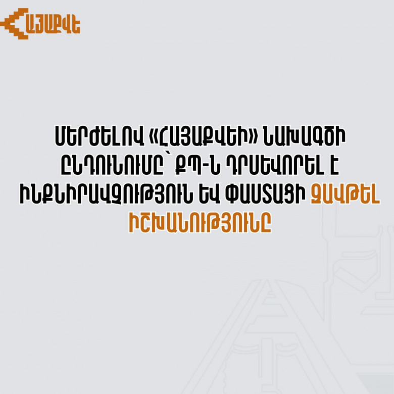 «ՀայաՔվե»-ի նախաձեռնող խումբը սահմանադրական բոլոր եղանակներով պայքարեց քաղաքացիների տված քվեն պաշտպանելու համար։ Սակայն ՔՊ-ն հերթական անգամ ապացուցեց, որ փաստացի զավթել է ժողովրդին պատկանող իշխանությունը, դրժում է իր նախընտրական խոստումները և իր իսկ հաստատած՝ կառավարության 2021-26 թթ․ ծրագրի հիմնադրույթները, և արհամարհում է նրանց
