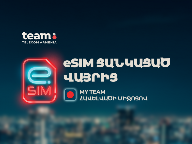 Team Telecom Armenia-ի հեռախոսահամար գնելու համար այլևս պարտադիր չէ լինել Հայաստանում կամ մոտենալ մասնաճյուղ։ Team-ը, առաջինը Հայաստանում, թվային լուծումների շնորհիվ բացառիկ հնարավորություն է տալիս My Team հավելվածի միջոցով գնել eSIM քարտ և ակտիվացնել այն աշխարհի ցանկացած կետից։