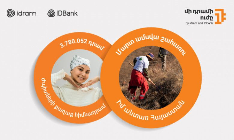 Ամփոփվել է «Մի դրամի ուժը» փետրվար ամսվա ծրագիրը։ IDBank-ը և Իդրամը կուտակված 3․780․052 դրամը նվիրաբերել են «Սիթի Օֆ Սմայլ» բարեգործական հիմնադրամին՝ աջակցելու քաղցկեղի դեմ պայքարող երեխաներին։