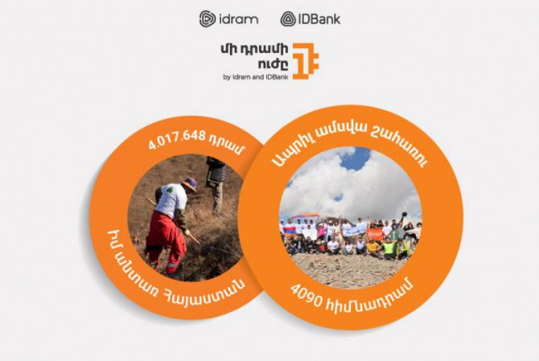 IDBank-ն ու Idram-ն ամփոփում են  «Մի դրամի ուժը» նախաձեռնության մարտ ամսվա ծրագիրը, որի շահառուն, ինչպես նախապես հայտարարվել էր, «Իմ անտառ Հայաստան» բնապահպանական հասարակական կազմակերպությունն է։ Կուտակված 4․017․648 դրամը հասարակական կազմակերպությունն ուղղելու է Հայաստանի անտառային ֆոնդի ավելացմանն ու կենսաբազմազանության պահպանման ծրագրերին։